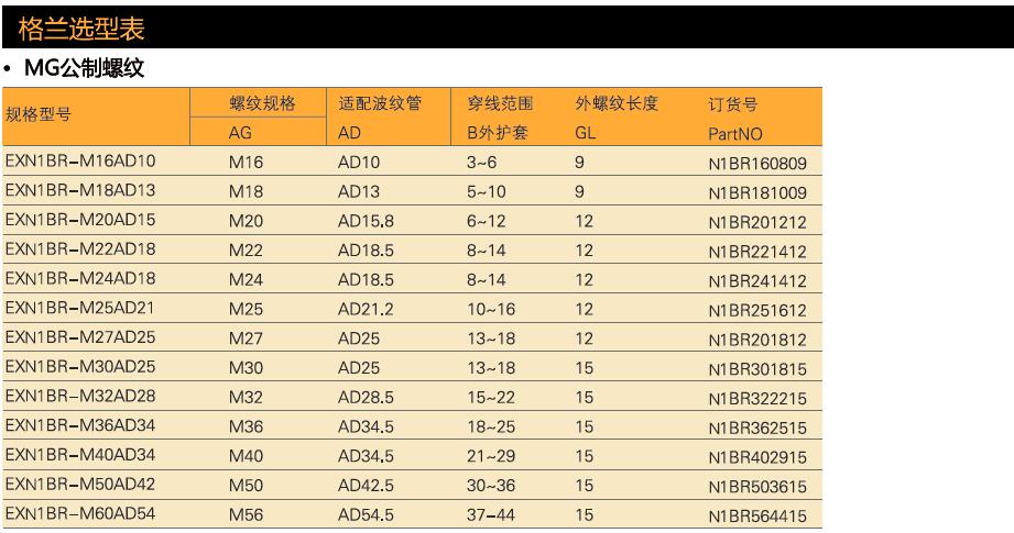 型號:N1BR波紋管電纜固定頭